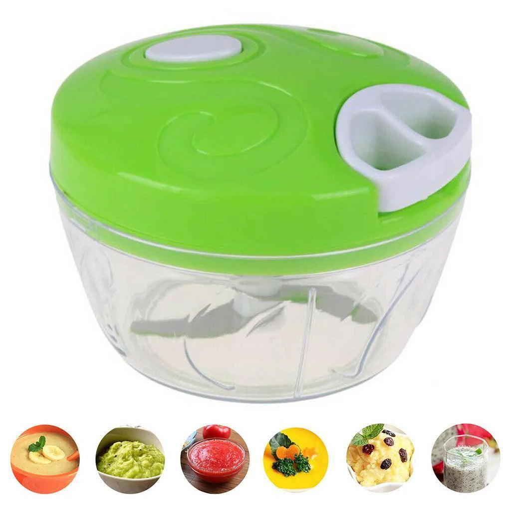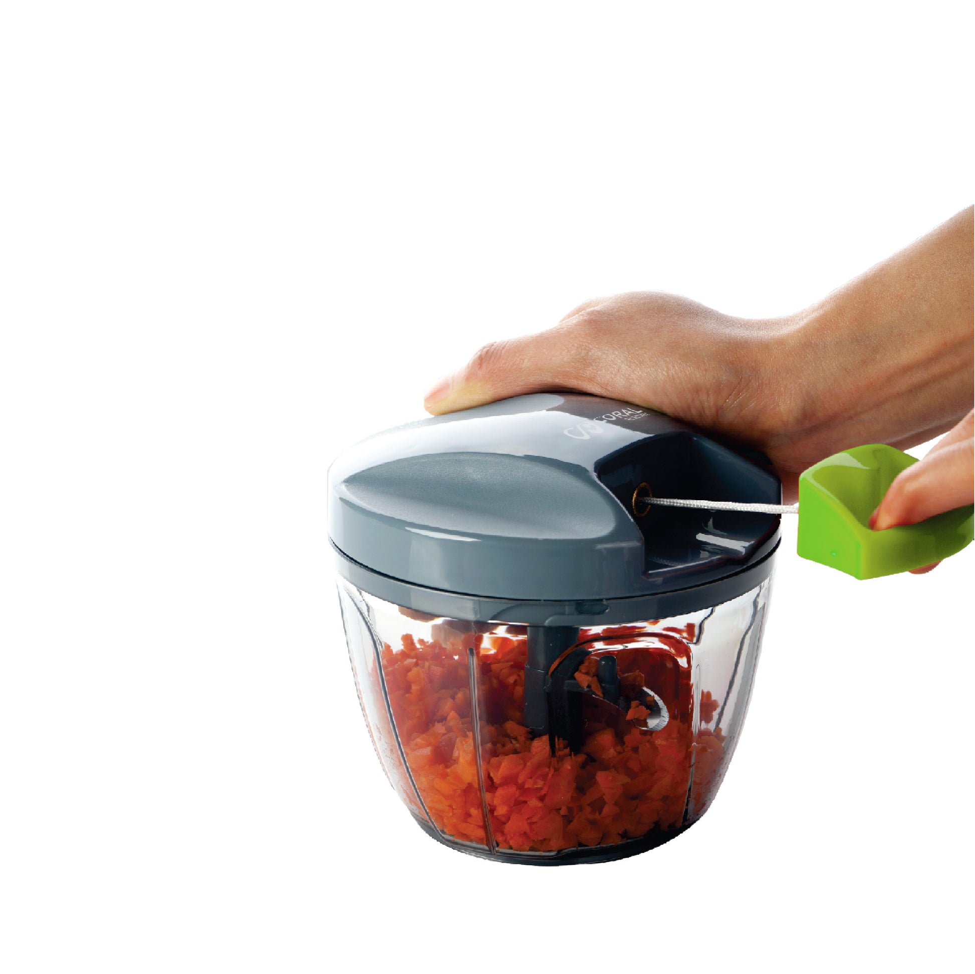 Samo ubacite omiljeno voće ili povrće u posudu i čvrsto zatvorite sigurnosni poklopac. Nekoliko laganih povlačenja kanapa je sve što je potrebno da dobijete savršeno iseckane namirnice po vašoj meri.